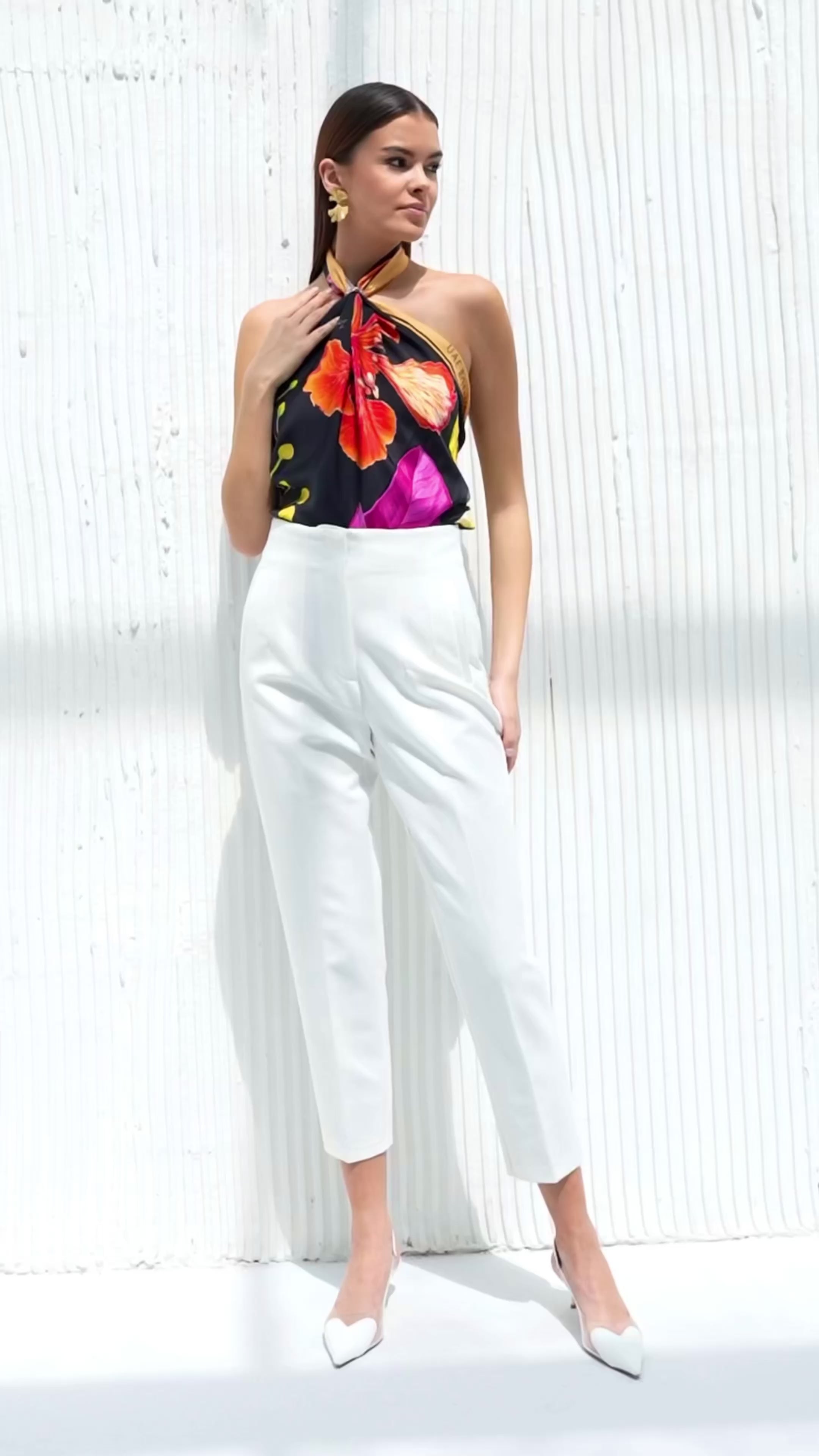 Scarf in silk twill with hand-rolled edges and double-sided print (100% silk).